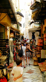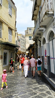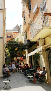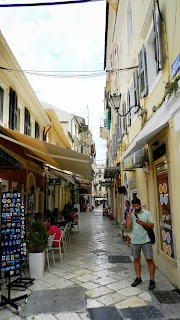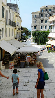 When I was 7ish years old I was lot smaller, streets were empty and everything looked large to me. This is probably why I remembered the whole site and its mystical appearance in early hours. Especially when we stumbled big city hall with loud church bells echoing the streets. Today tourism changed the scenery a lot and streets are full of various stores, coffee shops and restaurants. Comparing to 70ies, now walking the colorful streets full of people and friendly salesmen brought familiar environment of other Greek towns. However, unusual city's topography with up and downhill streets orientated in all directions provides Corfu little authentic feeling and small glimpse to the old times when civilization was still knocking the doors of all Greek's coastal towns. My wife chose some small authentic Greek tavern ran by old couple where we experienced even further travel to the past where traditional Greek hospitality was still not influenced with modern times, Wi-fi hot spots and where time flowed much slower.