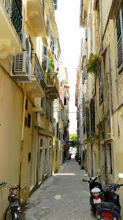Center of the city is a labyrinth of narrow streets and it requires great orientation skills to remember where you are or where you were in order to find the place of interests. While we waited in front of Sorbonne's office of the French consular building, I got the idea to use extremely elongated portrait size of 16:9 aspect ratio of digital format and start taking photos of small stone alleys. Generally I don't like this format comparing to its landscape counterpart just because the image looks too narrow in vertical direction but in case of streets of Corfu I could say this is ideal combination. We didn't have much time until the ship departure time so I chose "Scene Selector" feature on my Coolpix camera (which is somewhat improved automated mode in Nikon's software for digital cameras) and started clicking at the beginning of each street we crossed. After little post processing (mostly minor changes in brightness, contrast and sharpness) this blog post is the result. I included in this page 36 images of beautiful small and narrow streets all taken in the center of Corfu.